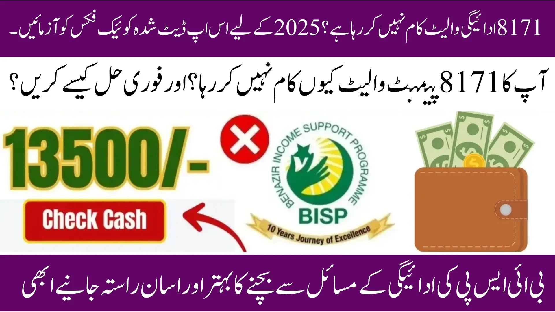 By keeping CNIC and wallet records updated, most of these issues can be avoided. Regularly checking the 8171 portal also ensures you remain informed about your payment status.