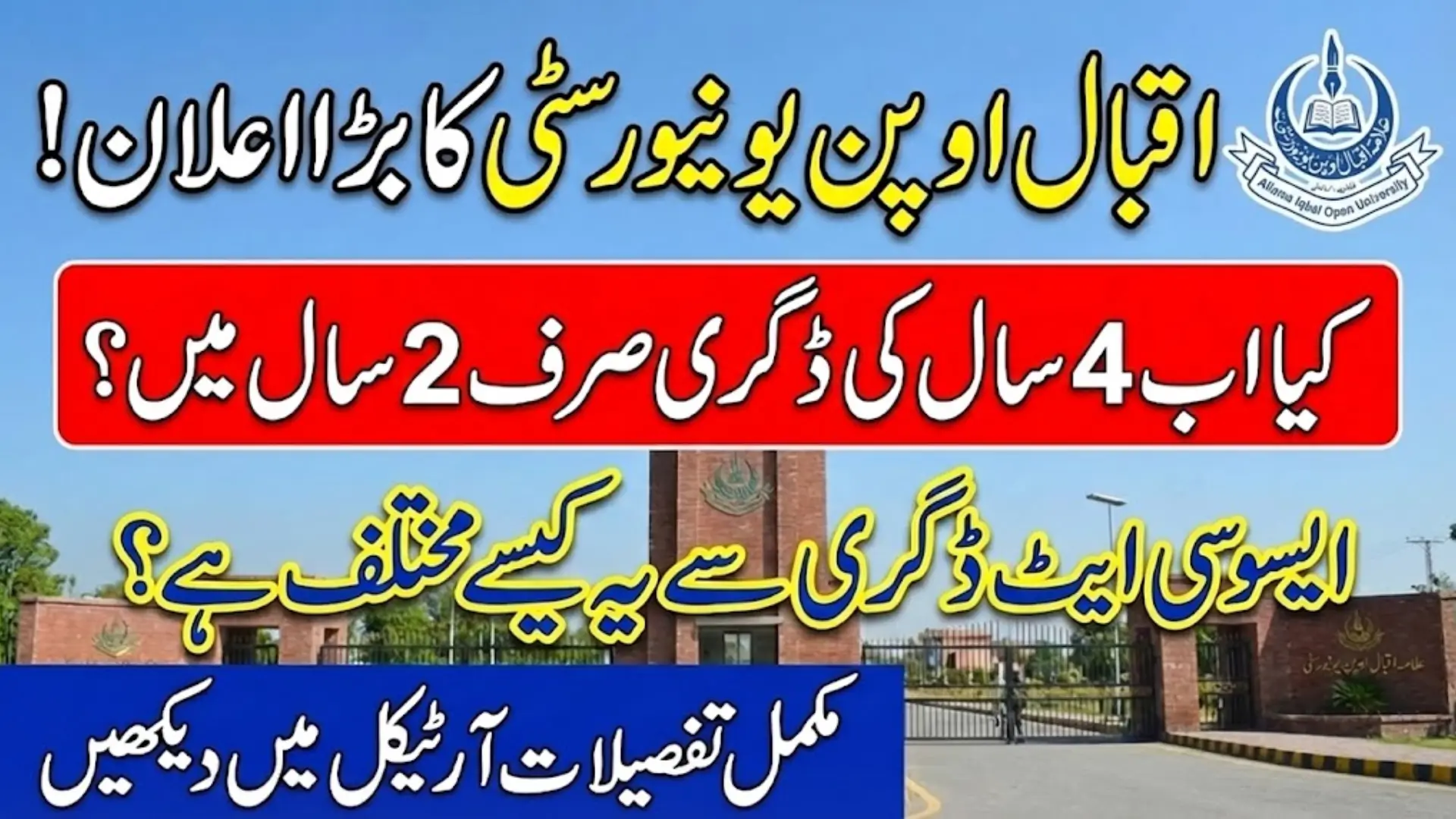 AIOU has clarified that the newly launched two-year degree program is entirely different from the existing Associate Degree program. While both programs span two years, their academic structures and future progression options are not the same.