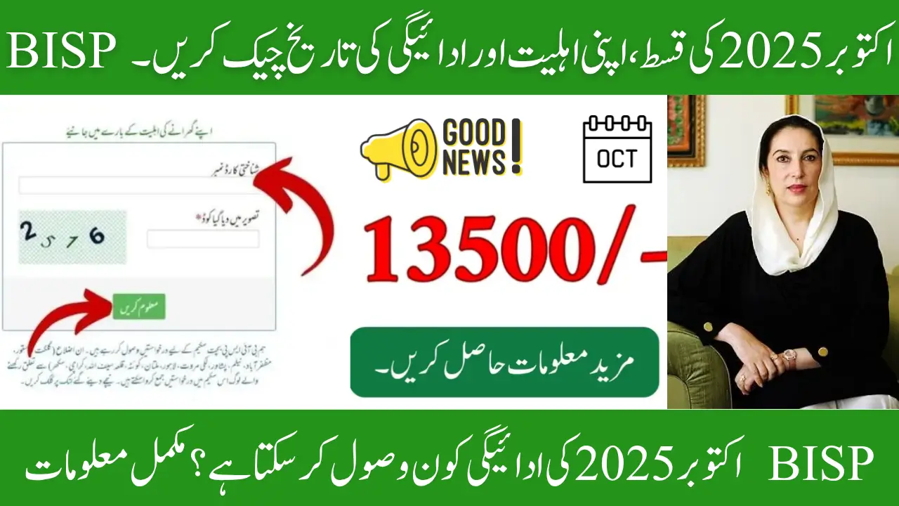 The BISP has released its October 2025 installment of Rs. 13,500 to provide financial relief to low-income families across Pakistan. This payment is direct at households already register in the Ehsaas database and meeting update eligibility requirements, such as valid CNICs, verified biometric records, and no active government employment or substantial business ownership. Beneficiaries can confirm their payment status through official channels, including SMS verification, the BISP website, or visiting designated biometric verification centers.