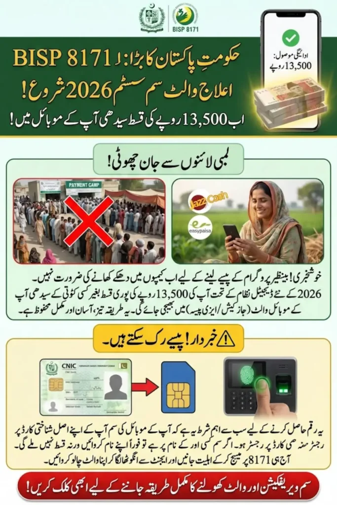 The Benazir Income Support Programme has introduced a major digital reform in 2026 by launching the BISP Wallet SIM 8171 system. This update replaces the old cash distribution camps with a secure digital wallet to ensure faster, safer, and more transparent payments for deserving families across Pakistan. This system transfers financial assistance directly to beneficiaries without long queues or third-party deductions.