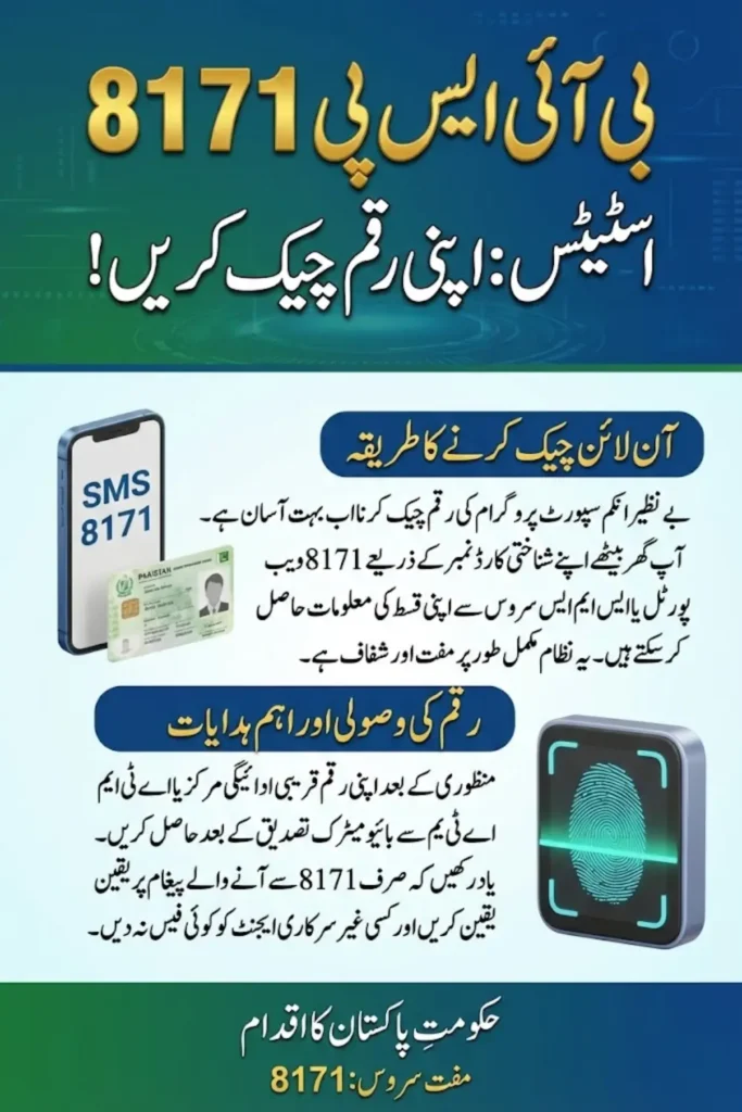 The Benazir Income Support Programme operates a digital tracking system that allows beneficiaries to verify their payments without visiting offices. Through the official 8171 portal and SMS service, families can confirm eligibility, installment release, and collection instructions using only their CNIC number. This system has made the process faster, more transparent, and accessible for people across urban and rural areas.