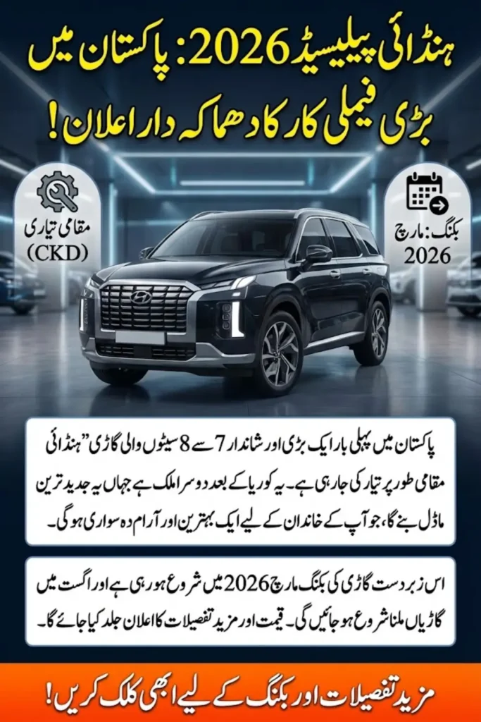 At this stage, Hyundai has not disclosed official specifications, engine options, or variant information for the Pakistani version of the Palisade. Customers will need to wait until closer to the booking date for complete technical details.