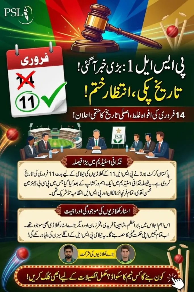 Before the official announcement, a leaked court document claimed that the PSL 11 Player Auction would take place on 14 February. This report led to uncertainty and discussion among fans and stakeholders.