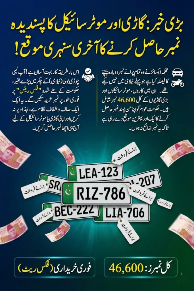 DG Excise Umar Sher Chatha submitted the proposal for government approval, enabling the resale of leftover vehicle and motorcycle numbers at pre-determined rates. This transparent system prevents misuse, maximises revenue, and gives citizens a second chance to acquire popular or special numbers without waiting for future auctions.