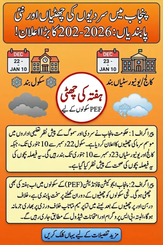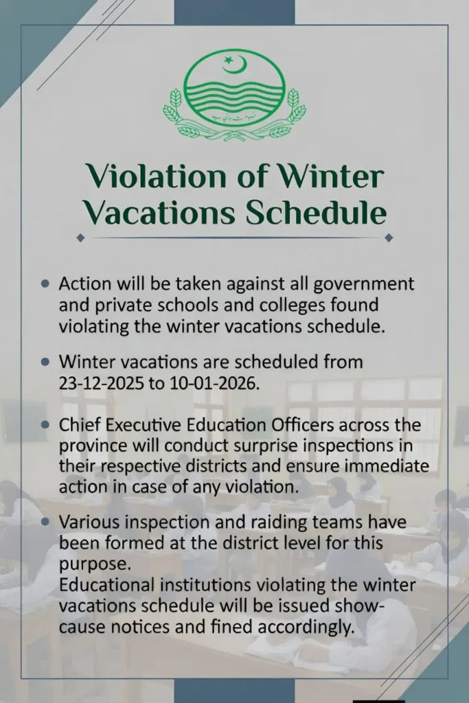 Winter Vacation Restrictions in Punjab 2025 to 2026